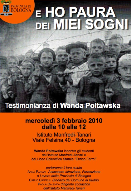 Una testimonianza fuori dal coro quella di Wanda Poltawska nel Giorno della Memoria, che la Provincia di Bologna ha proposto all’attenzione degli studenti dell’Istituto Manfredi Tanari e del Liceo Scientifico “E. Fermi”di Bologna mercoledì 3 febbraio 2010.